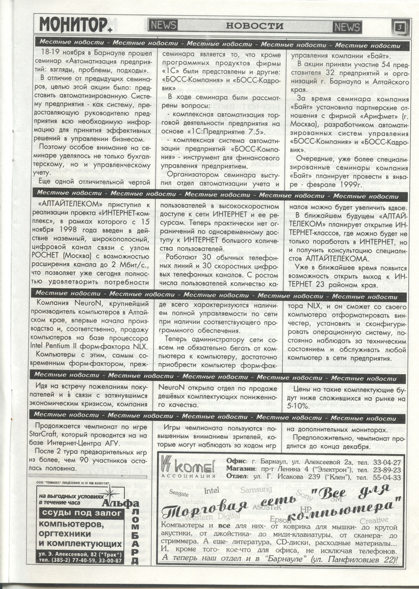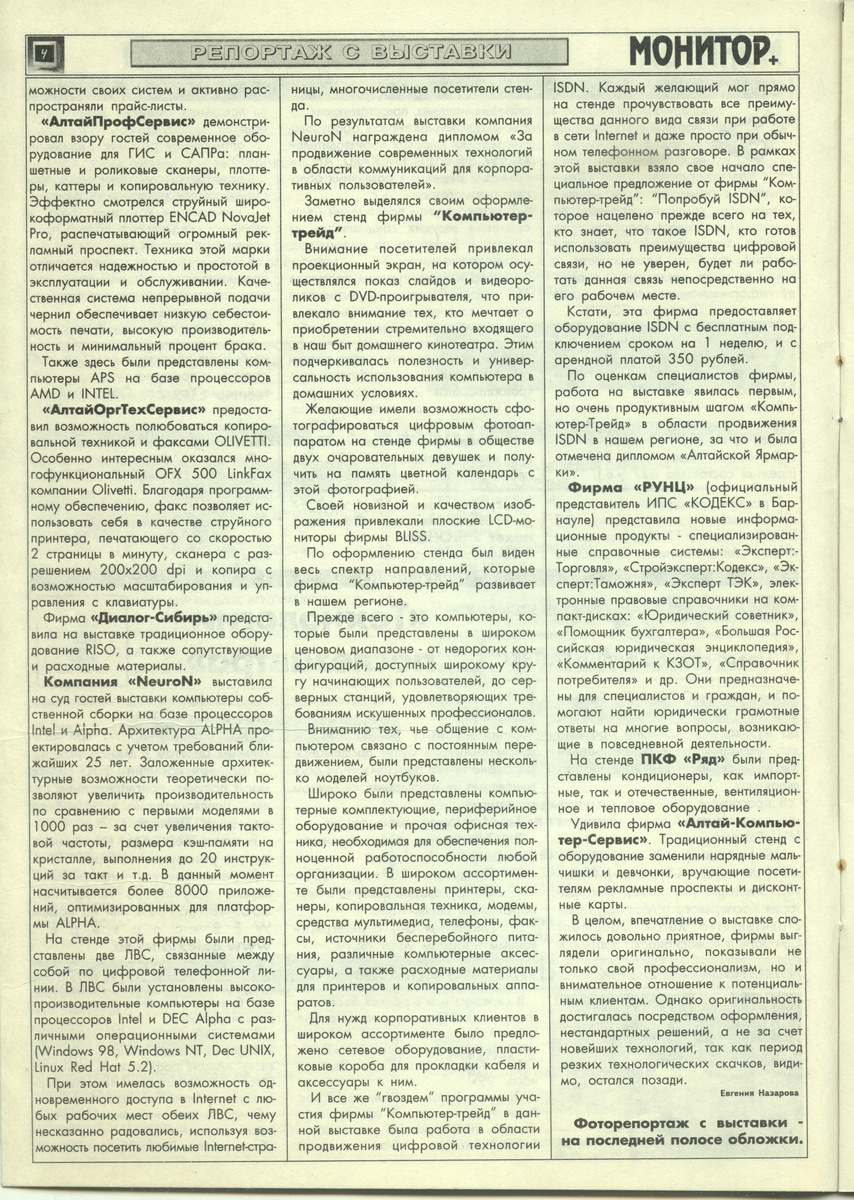 Печатные издания о Нейроне На этой странице представлены различные материалы из местной Барнаульской и Алтайской бумажной прессы, когда она ещё была популярна... Бренды компьютерной техники Neuron Сетевое оборудование D-Link Ruijie Networks ORIGO Networks Qtech Принтеры и MФУ Pantum Eltena Программы 1С Astra Linux +AQQU- Ноутбуки, нетбуки, ультрабуки Lenovo DAHUA TP-LINK Supermicro Серверы, системы хранения HPE Allied Telesis AXIS Серверы DELL Eltex Zyxel Mikrotik Yealink Yeastar WD Seagate ЦМО сетевой кабель Molex Netlan Сетевые хранилища, видеорегистраторы Qnap Оборудование, маршрутизаторы, коммутаторы, свичи, wi-fi Cisco Процессоры, материнские платы Intel AMD Juniper MOXA Ubiquiti Networks Антивирусы Kaspersky Lab Linux RedHat Microsoft ROSA Wi-Tek Серверы, системы хранения IBM